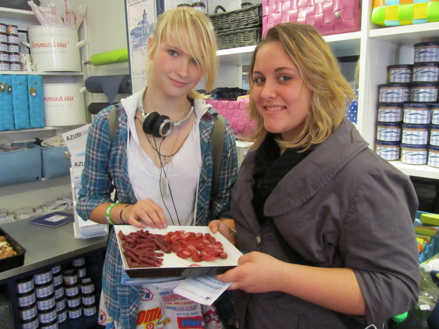 Bereits alte Hasen in Sachen Lehrstellenrallye fanden sich in der Stadtschlachterei Claußen ein. Lisa-Marie Thiele und Anna Pauly hatten sich schon in den Jahren zuvor über die Ausbildungsmöglichkeiten in und um Husum informiert. „Ich finde das Toll“, meinte Anna, „vor allem weiß ich mittlerweile schon genau, in welche Betriebe ich gehen will und was mich weniger interessiert.“ Lisa-Marie allerdings war ein bisschen enttäuscht von ihrem Gymnasium. „Bei uns wurde diese Rallye fast gar nicht erwähnt, eigentlich weiß ich das nur von Anna.“